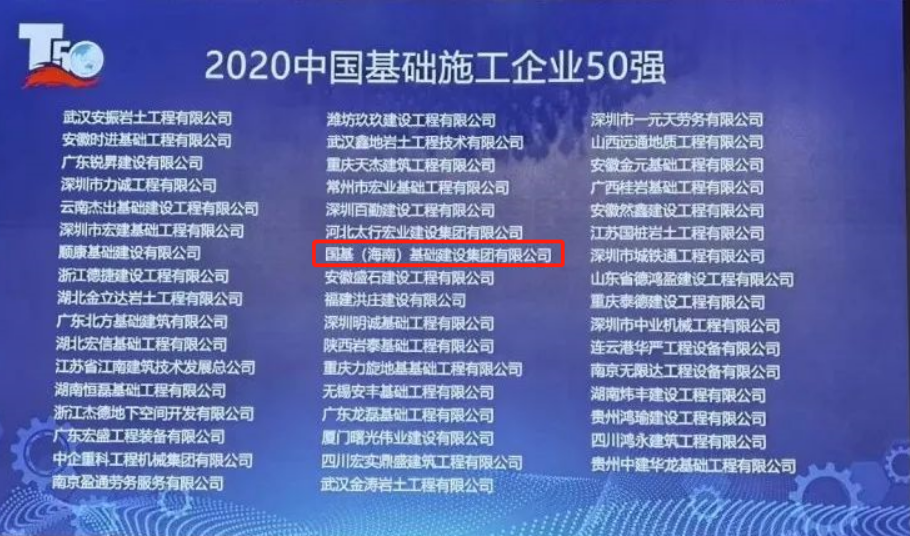 國基基礎(chǔ)集團首次參與中國基礎(chǔ)施工企業(yè)100強評選即憑借驕人的企業(yè)綜合實力獲得行業(yè)高度認可,強勢入圍50強,載譽歸來,可喜可賀!