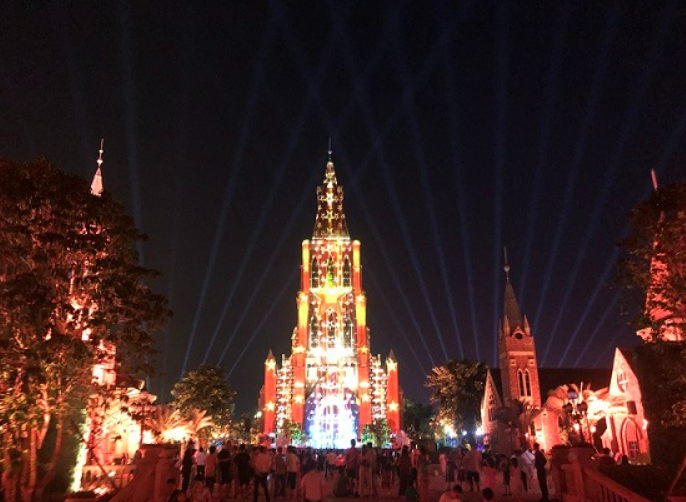 豐盛的美味晚餐后,小伙伴們步行前往雙子沙灘,觀看絕美燈光秀,共享視覺(jué)盛宴,不禁感嘆,我們?nèi)缃竦男腋I钆c黨的正確領(lǐng)導(dǎo)密不可分,我們要感恩黨?。?/p>