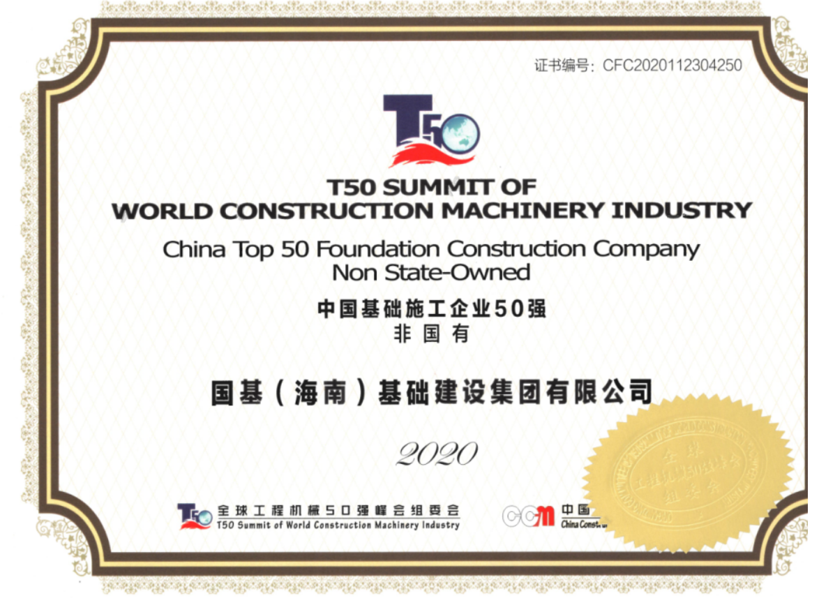 【新征程·新跨越】國基基礎(chǔ)集團(tuán)榮獲“中國基礎(chǔ)施工企業(yè)50強(qiáng)”稱號